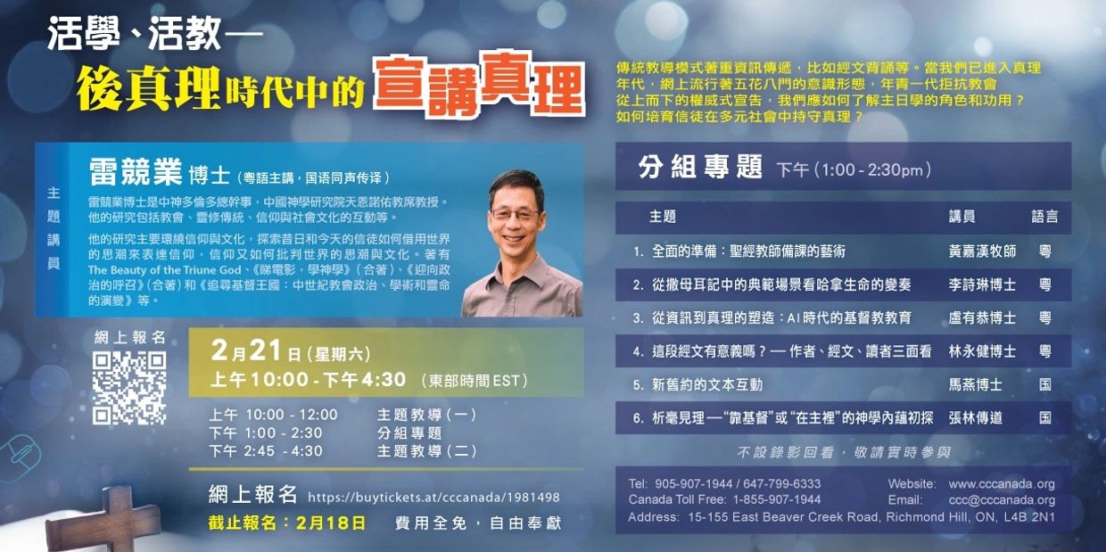 在後真理時代,情緒勝於事實、演算法主導注意力,真理的聲音常被淹沒。AI不僅重塑資訊環境,也深刻影響人的思考、信念與屬靈敏感度。本工作坊從人工智能的視角切入,探討教會如何透過基督教教育,培養信徒在混亂中辨識真理、建立屬靈分辨力,並在數位文化裡實踐以基督為中心的生命見證。